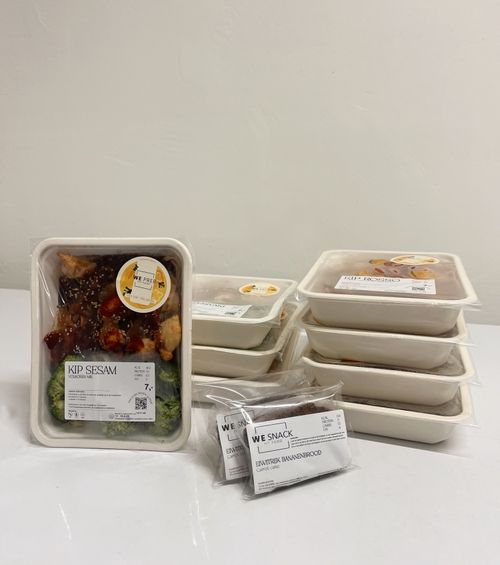 Dit geweldige pakket bevat 8 maaltijden naar keus en vier plakjes huisgemaakte bananenbrood in de smaak carrot cake.